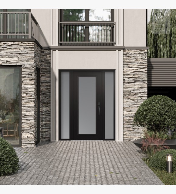 The double-chamber glazing combined with polystyrene insulation reduces heat loss by 40-50% compared to conventional exterior doors: