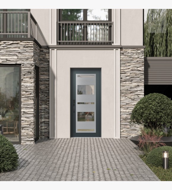 Modern Steel Front Door Diamond C10 36" x 80" anthracite/anthracite clear Glass Panel stainless steel RHI