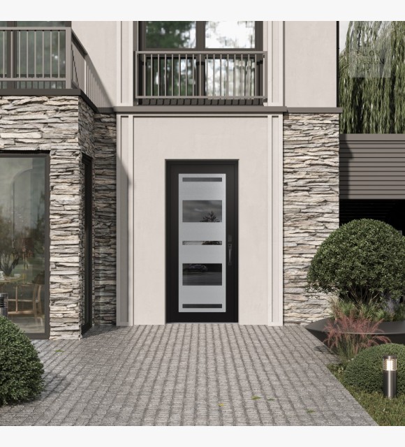 The double-chamber glazing combined with polystyrene insulation reduces heat loss by 40-50% compared to conventional exterior doors: