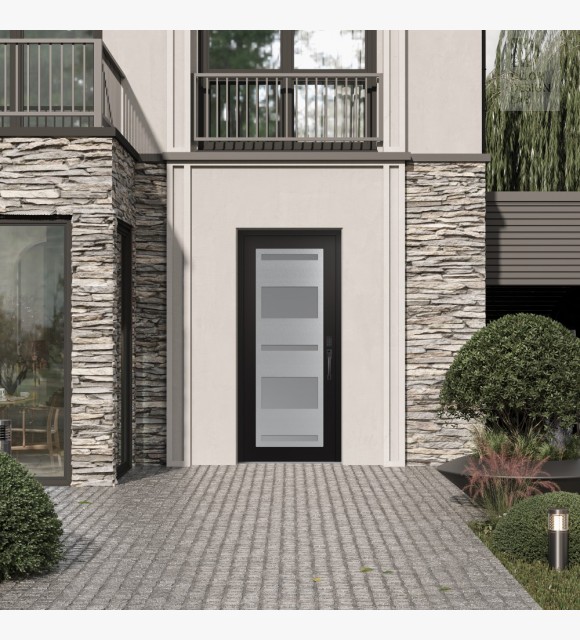 Modern Steel Front Door Diamond C10 36" x 80" black/white frosted Glass Panel stainless steel LHI