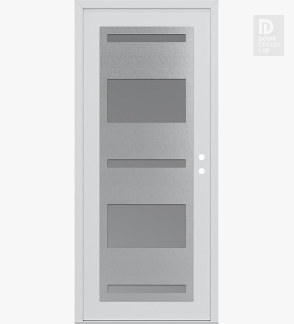 Modern Steel Front Door Diamond C10 36" x 80" white/white frosted Glass Panel stainless steel LHI