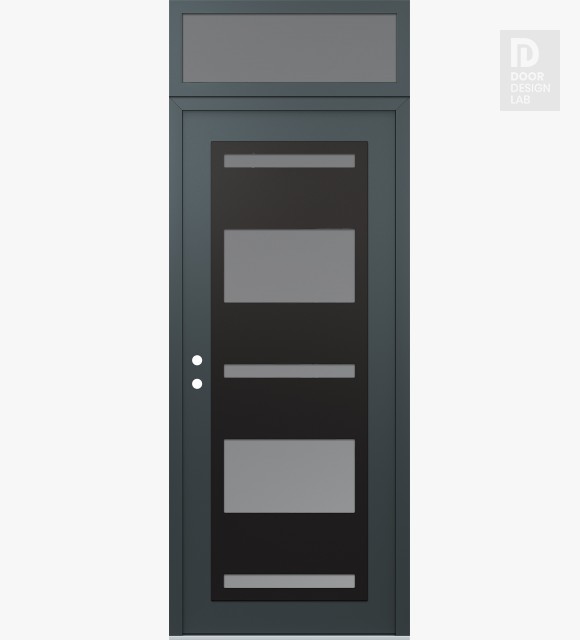 Modern Steel Front Door Diamond C10 36" x 96" anthracite/anthracite frosted Glass Panel black RHI with Transom frosted Glass