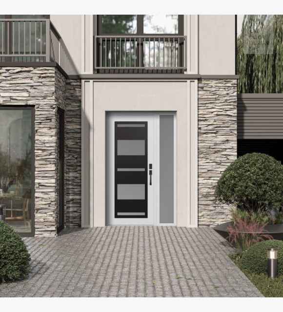 The double-chamber glazing combined with polystyrene insulation reduces heat loss by 40-50% compared to conventional exterior doors: