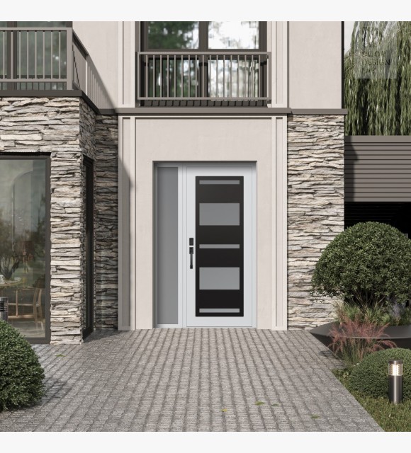 The double-chamber glazing combined with polystyrene insulation reduces heat loss by 40-50% compared to conventional exterior doors: