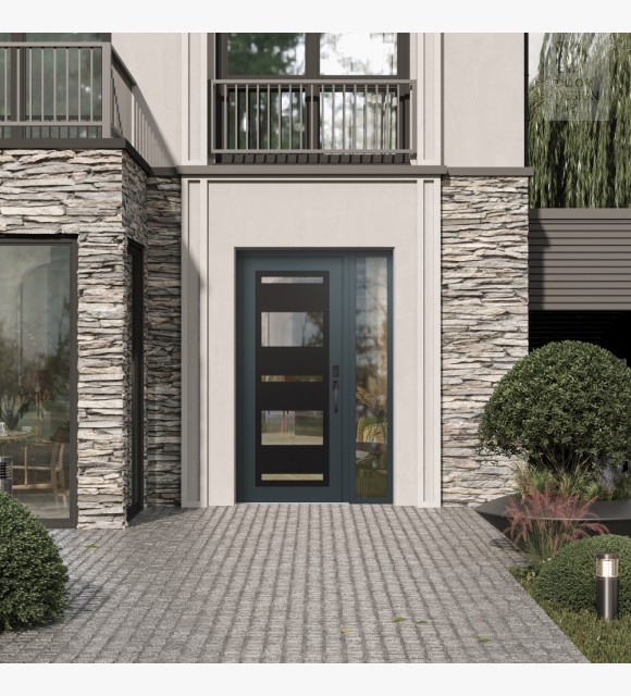 Modern Steel Front Door Diamond C10 50" x 80" anthracite/anthracite clear Glass Panel black LHI with Sidelite clear Glass