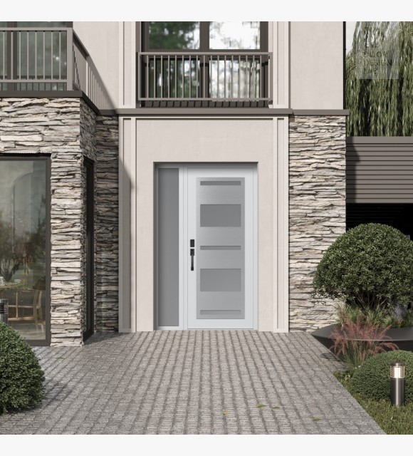 The double-chamber glazing combined with polystyrene insulation reduces heat loss by 40-50% compared to conventional exterior doors: