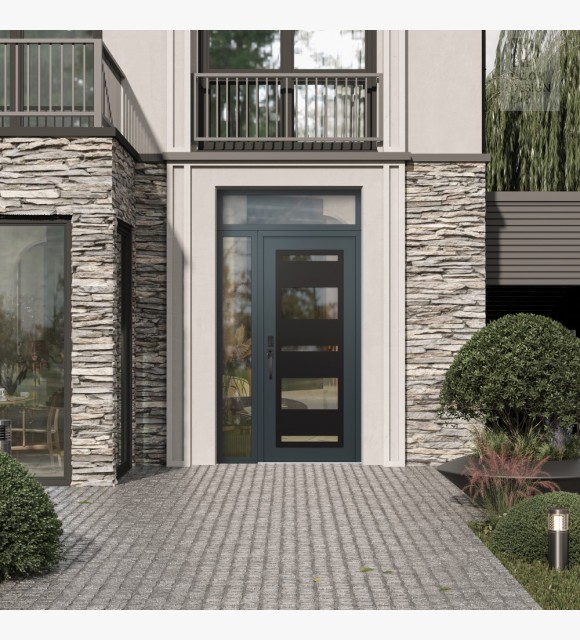 Modern Steel Front Door Diamond C10 50" x 96" anthracite/anthracite clear Glass Panel black RHI with Sidelite and Transom clear Glass