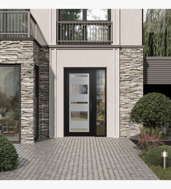The door unit kit includes one sidelite, a decorative stationary section installed to the left or right of the exterior door.