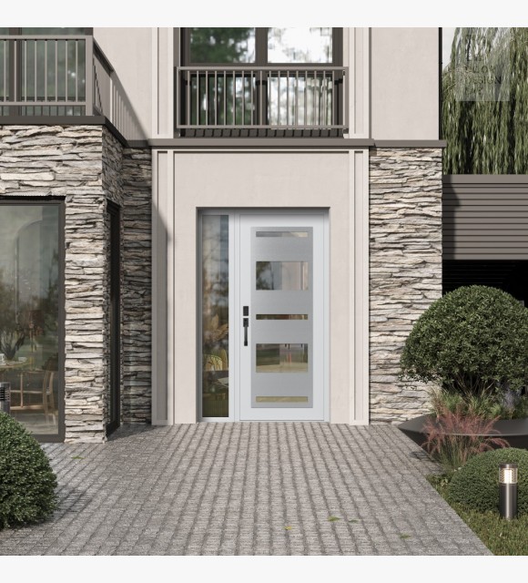 The double-chamber glazing combined with polystyrene insulation reduces heat loss by 40-50% compared to conventional exterior doors: