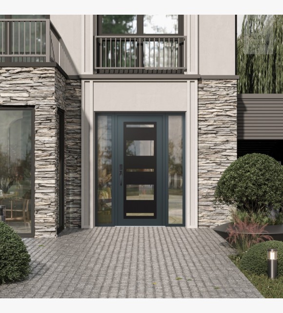 Modern Steel Front Door Diamond C10 60" x 80" anthracite/anthracite clear Glass Panel black RHI with 2 Sidelites clear Glass