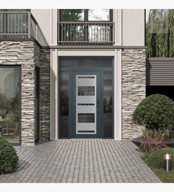 Modern Steel Front Door Diamond C10 60" x 96" anthracite/anthracite mirrored Glass Panel stainless steel LHI with 2 Sidelites and Transom mirrored Glass