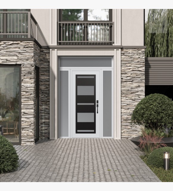 The double-chamber glazing combined with polystyrene insulation reduces heat loss by 40-50% compared to conventional exterior doors: