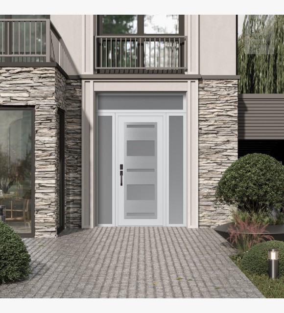 The double-chamber glazing combined with polystyrene insulation reduces heat loss by 40-50% compared to conventional exterior doors: