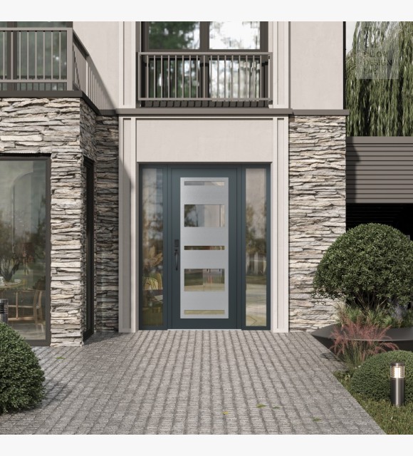 Modern Steel Front Door Diamond C10 68" x 80" anthracite/anthracite clear Glass Panel stainless steel RHI with 2 Sidelites clear Glass