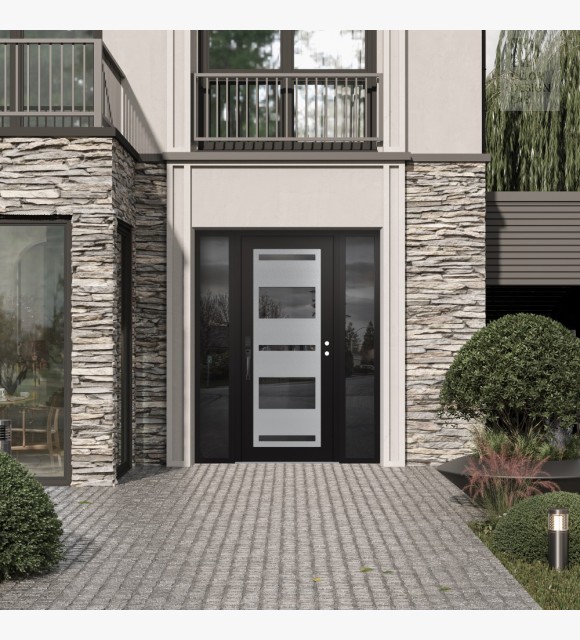 The double-chamber glazing combined with polystyrene insulation reduces heat loss by 40-50% compared to conventional exterior doors: