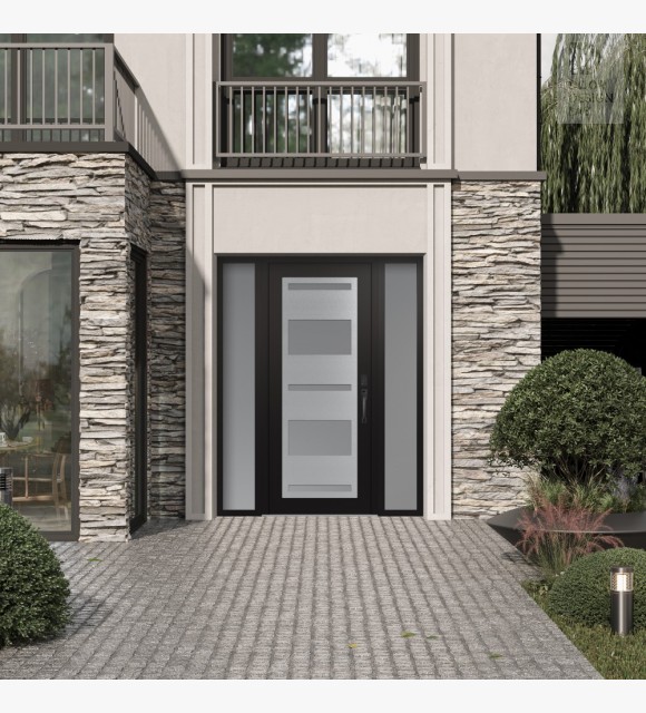 The double-chamber glazing combined with polystyrene insulation reduces heat loss by 40-50% compared to conventional exterior doors: