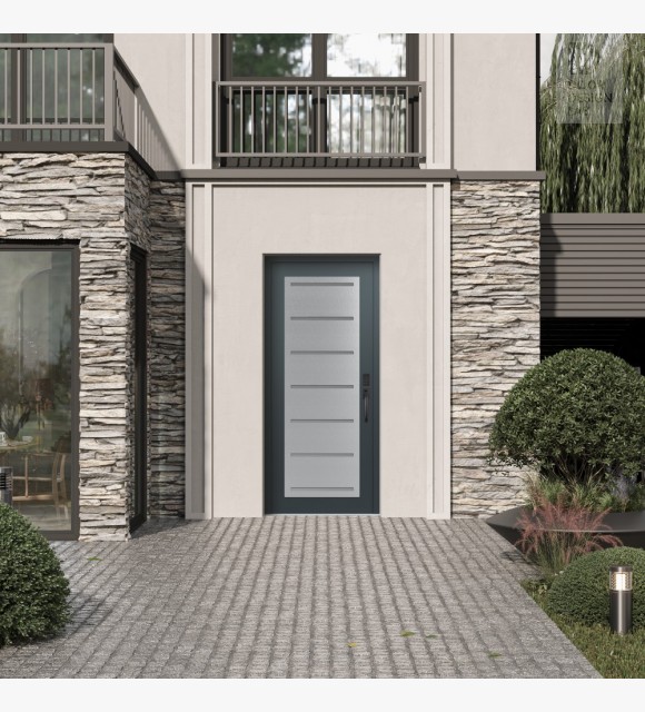Modern Steel Front Door Diamond C11 36" x 80" anthracite/anthracite frosted Glass Panel stainless steel LHI