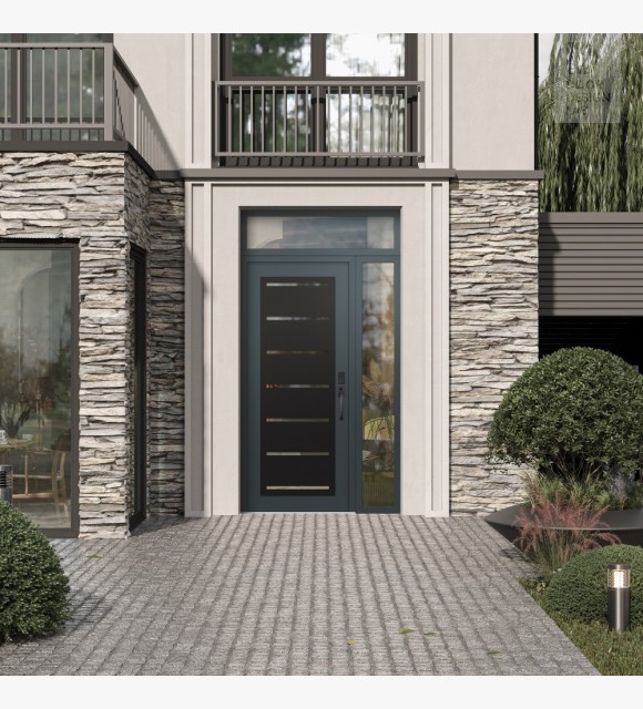 The double-chamber glazing combined with polystyrene insulation reduces heat loss by 40-50% compared to conventional exterior doors: