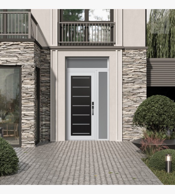 The double-chamber glazing combined with polystyrene insulation reduces heat loss by 40-50% compared to conventional exterior doors: