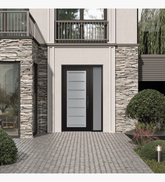 The double-chamber glazing combined with polystyrene insulation reduces heat loss by 40-50% compared to conventional exterior doors: