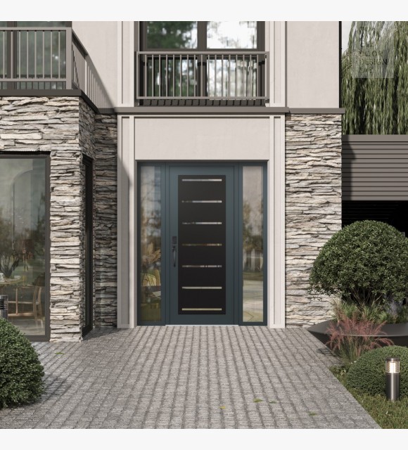 Modern Steel Front Door Diamond C11 60" x 80" anthracite/anthracite clear Glass Panel black RHI with 2 Sidelites clear Glass