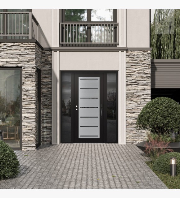 The double-chamber glazing combined with polystyrene insulation reduces heat loss by 40-50% compared to conventional exterior doors:
