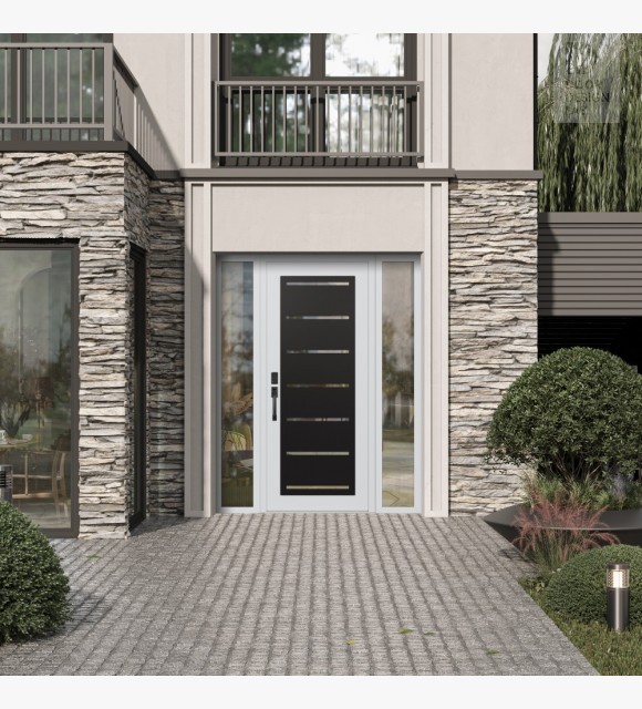 The double-chamber glazing combined with polystyrene insulation reduces heat loss by 40-50% compared to conventional exterior doors: