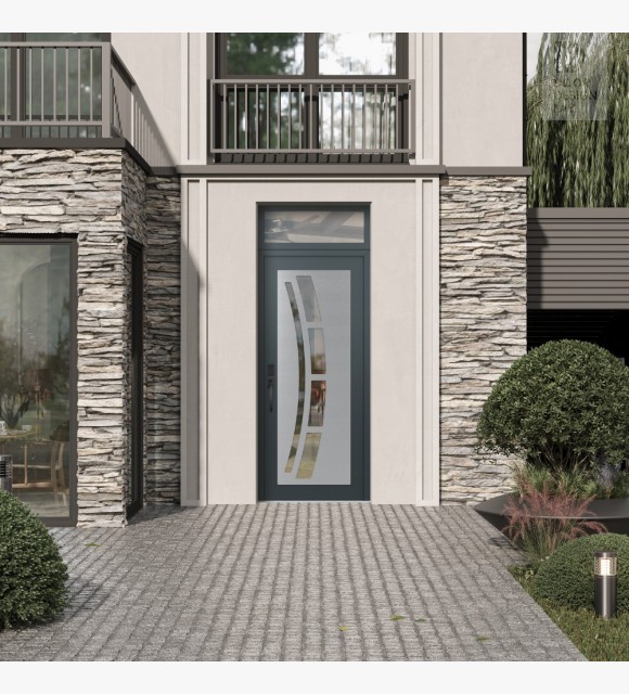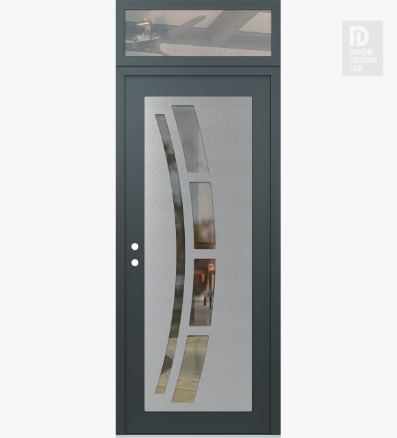Modern Steel Front Door Diamond C12 36" x 96" anthracite/anthracite clear Glass Panel stainless steel RHI with Transom clear Glass