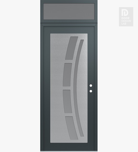 Modern Steel Front Door Diamond C12 36" x 96" anthracite/anthracite frosted Glass Panel stainless steel LHI with Transom frosted Glass
