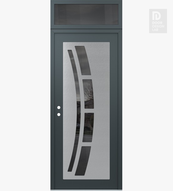 Modern Steel Front Door Diamond C12 36" x 96" anthracite/anthracite mirrored Glass Panel stainless steel RHI with Transom mirrored Glass