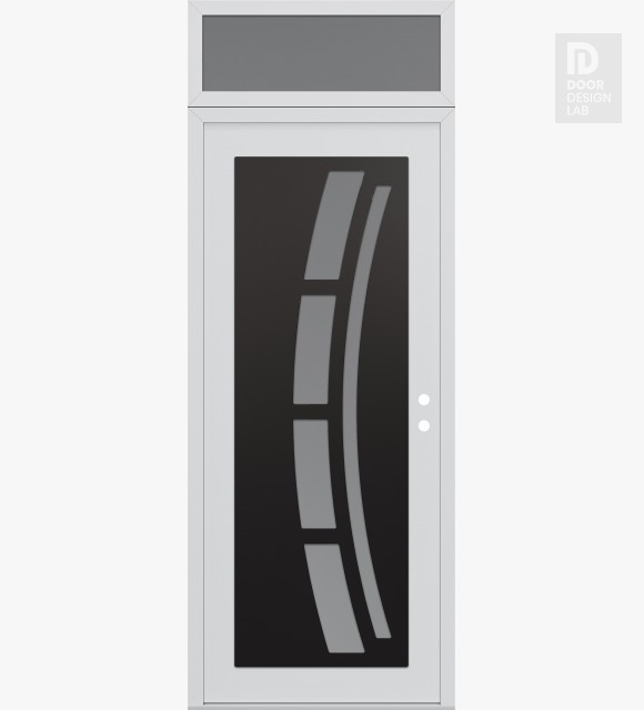 Modern Steel Front Door Diamond C12 36" x 96" white/white frosted Glass Panel black LHI with Transom frosted Glass