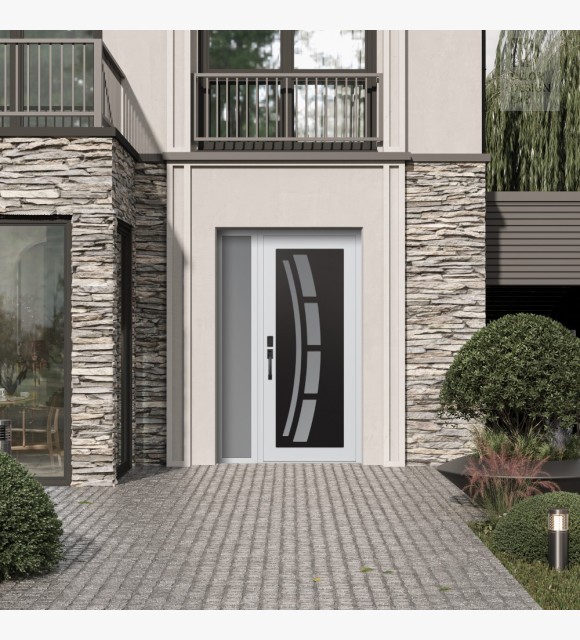 The double-chamber glazing combined with polystyrene insulation reduces heat loss by 40-50% compared to conventional exterior doors: