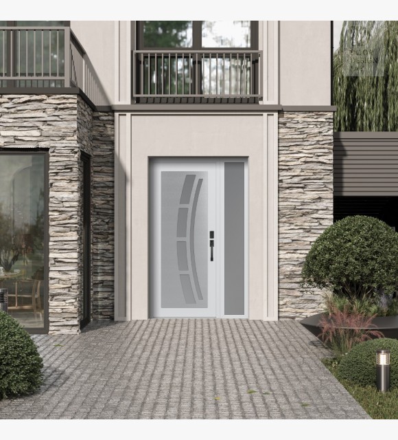 The double-chamber glazing combined with polystyrene insulation reduces heat loss by 40-50% compared to conventional exterior doors: