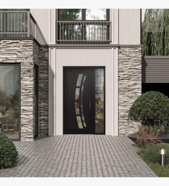 The double-chamber glazing combined with polystyrene insulation reduces heat loss by 40-50% compared to conventional exterior doors: