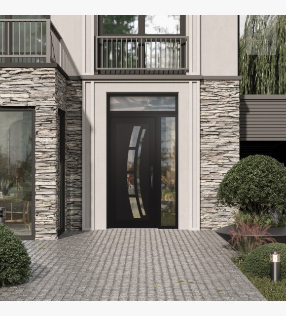 The double-chamber glazing combined with polystyrene insulation reduces heat loss by 40-50% compared to conventional exterior doors: