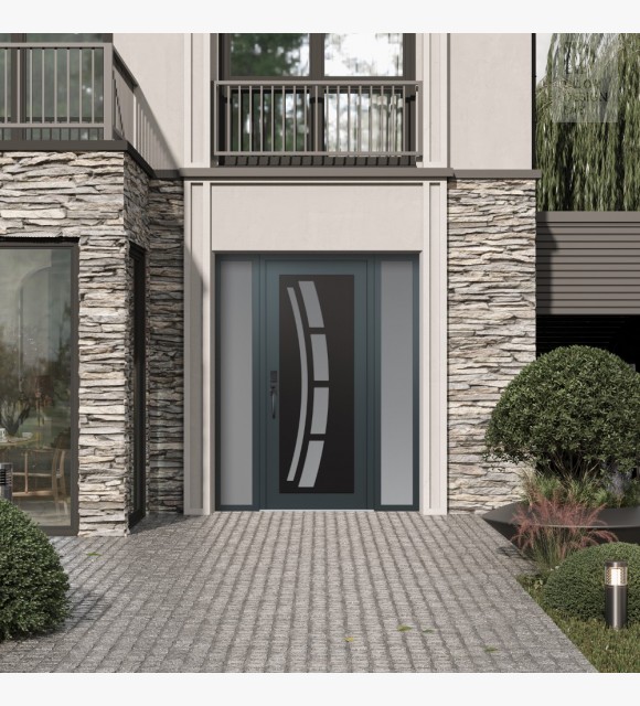 Modern Steel Front Door Diamond C12 60" x 80" anthracite/anthracite frosted Glass Panel black RHI with 2 Sidelites frosted Glass
