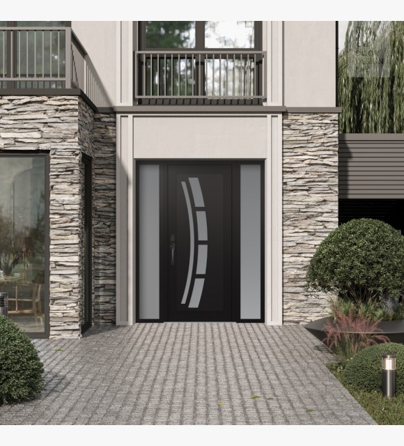 The double-chamber glazing combined with polystyrene insulation reduces heat loss by 40-50% compared to conventional exterior doors: