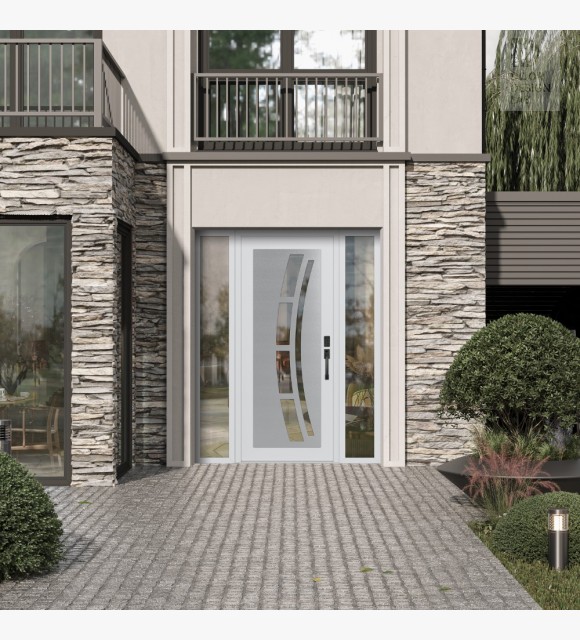 The double-chamber glazing combined with polystyrene insulation reduces heat loss by 40-50% compared to conventional exterior doors:
