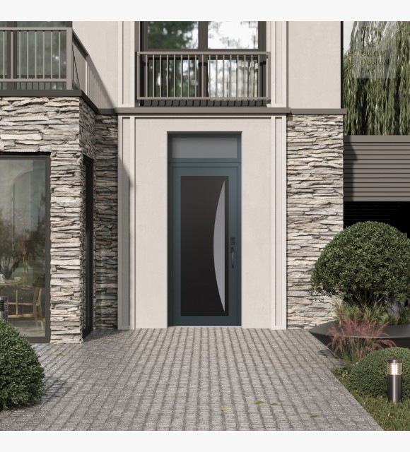 Modern Steel Front Door Diamond C13 36" x 96" anthracite/anthracite frosted Glass Panel black LHI with Transom frosted Glass