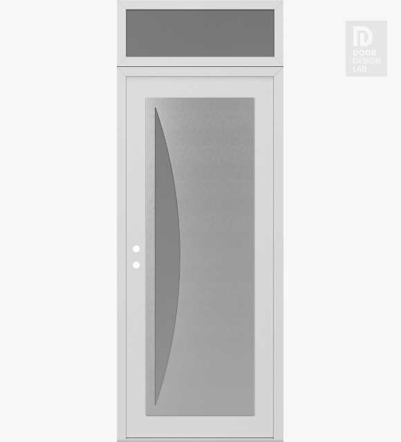 Modern Steel Front Door Diamond C13 36" x 96" white/white frosted Glass Panel stainless steel RHI with Transom frosted Glass