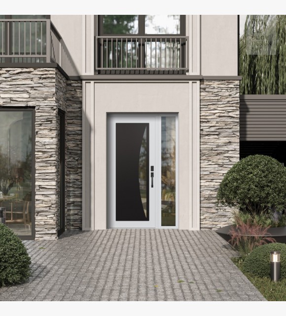 The double-chamber glazing combined with polystyrene insulation reduces heat loss by 40-50% compared to conventional exterior doors: