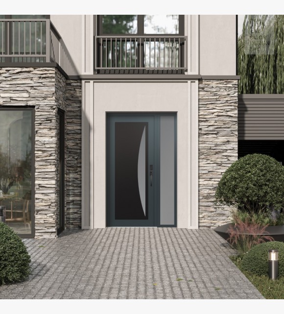 Modern Steel Front Door Diamond C13 50" x 80" anthracite/anthracite frosted Glass Panel black LHI with Sidelite frosted Glass