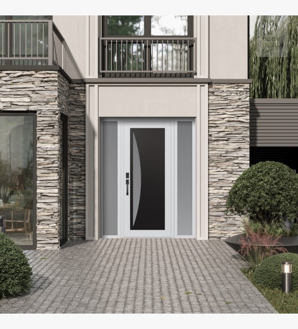 The double-chamber glazing combined with polystyrene insulation reduces heat loss by 40-50% compared to conventional exterior doors: