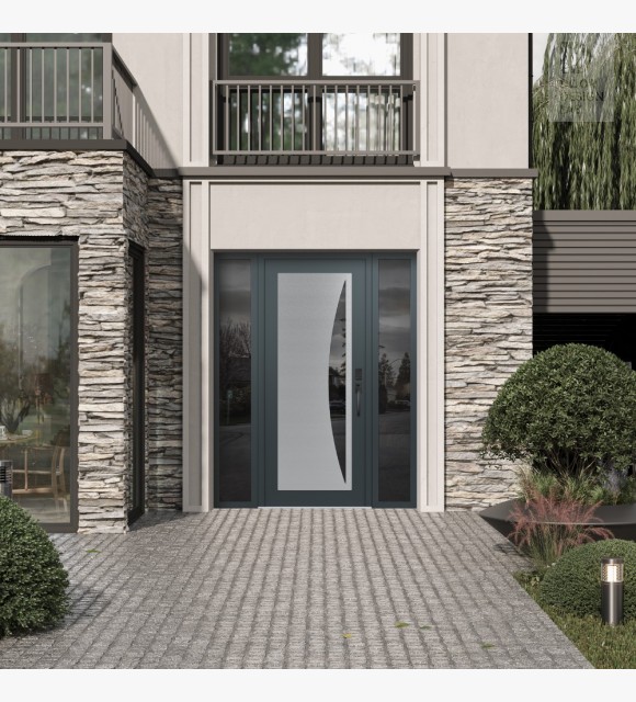 Modern Steel Front Door Diamond C13 64" x 80" anthracite/anthracite mirrored Glass Panel stainless steel LHI with 2 Sidelites mirrored Glass