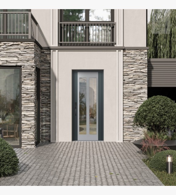 The double-chamber glazing combined with polystyrene insulation reduces heat loss by 40-50% compared to conventional exterior doors: