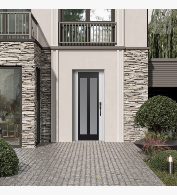 The double-chamber glazing combined with polystyrene insulation reduces heat loss by 40-50% compared to conventional exterior doors: