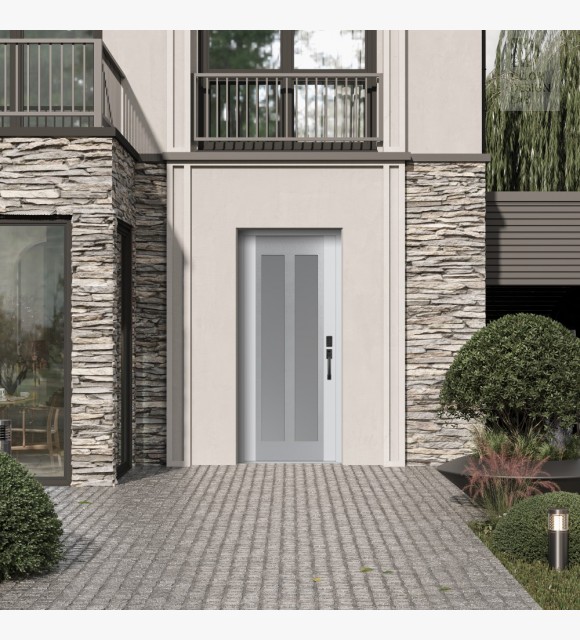 The double-chamber glazing combined with polystyrene insulation reduces heat loss by 40-50% compared to conventional exterior doors:
