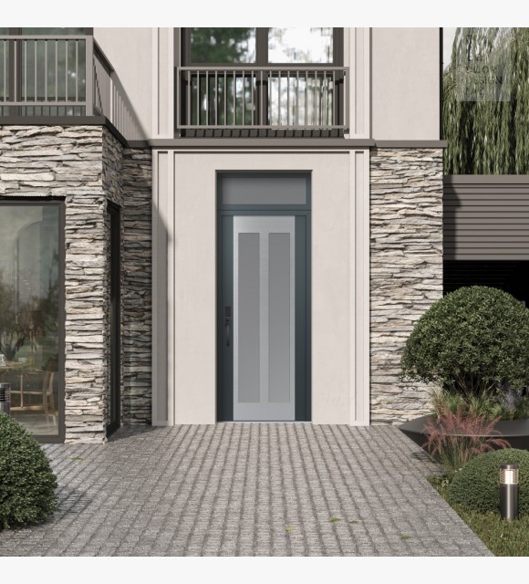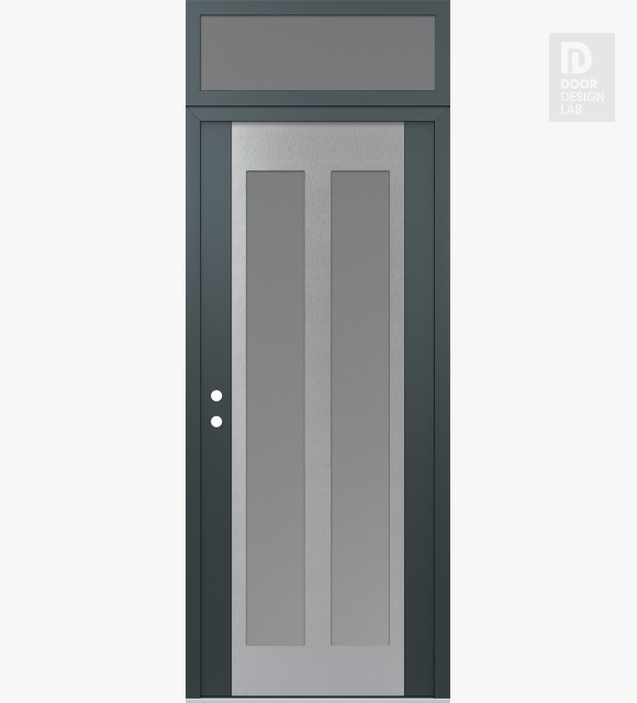 Modern Steel Front Door Diamond C14 36" x 96" anthracite/anthracite frosted Glass Panel stainless steel RHI with Transom frosted Glass
