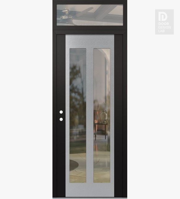 Modern Steel Front Door Diamond C14 36" x 96" black/black clear Glass Panel stainless steel RHI with Transom clear Glass