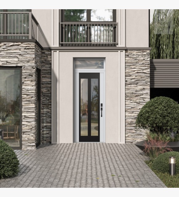 The double-chamber glazing combined with polystyrene insulation reduces heat loss by 40-50% compared to conventional exterior doors: